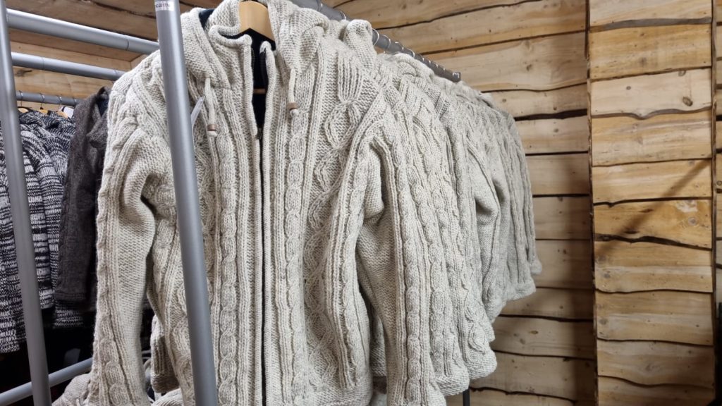 #SH-NP-003-#100% Organic Wool Jumper Jacket with Organic Cotton wool Lining inside Natural dye colors used. Size S to XXL in Natural Colours We started supporting the Women's Group in Village Nepal financially. They get Support for Kids' education and Families to have a better lifestyle.We started production of Hand Knitted items in Nepal in Organic Wool with lining 100% Organic. Some items are lined Organic inside Hand-knitted by women's group village made in Nepal. Enjoy nature.