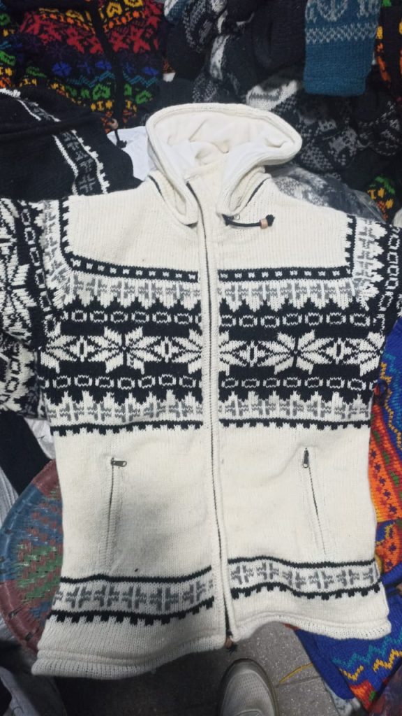 #SH-NP-0022 #100% Organic Wool Sweater Cardigan Art work Hand Knitted with Organic Cotton wool Lining inside Natural dye colors used. Size S to XXL in Natural Colours We started supporting the Women's Group in Village Nepal financially. They get Support for Kids' education and Families to have a better lifestyle.We started production of Hand Knitted items in Nepal in Organic Wool with