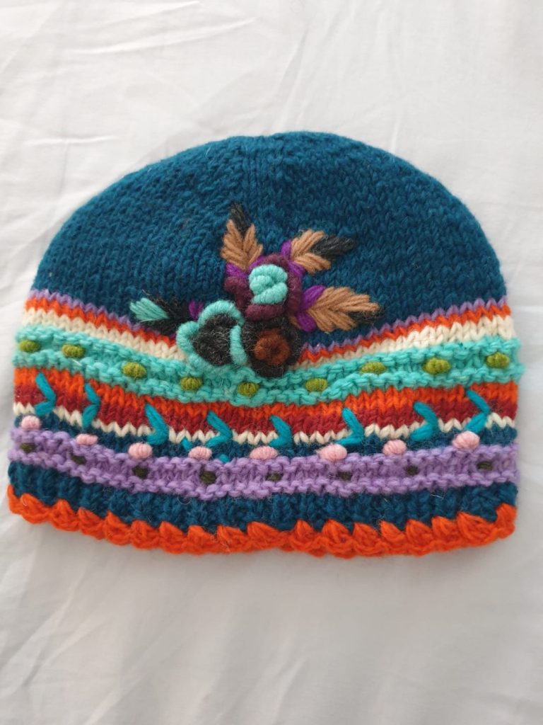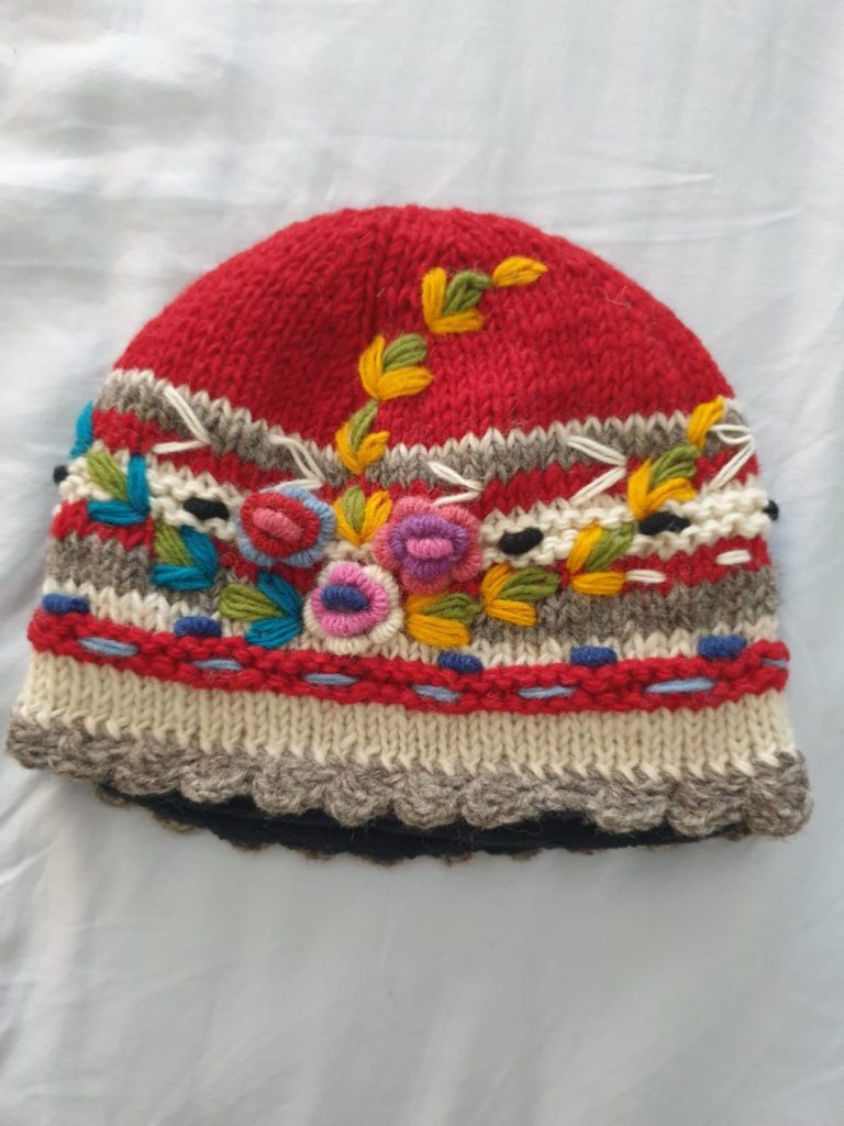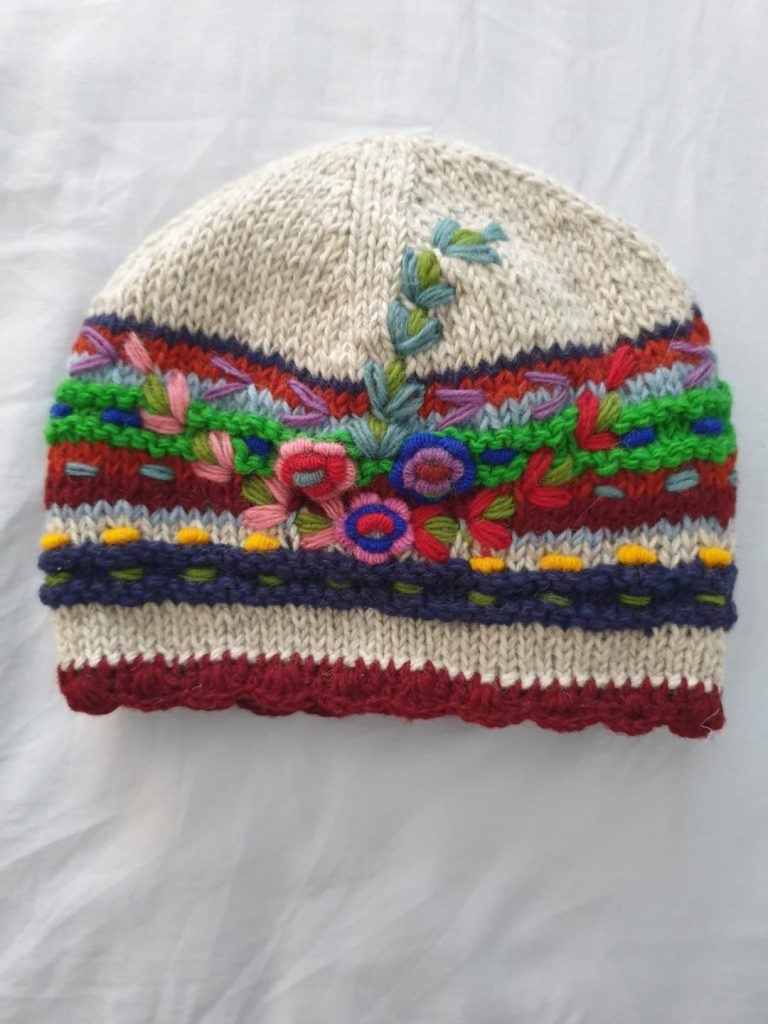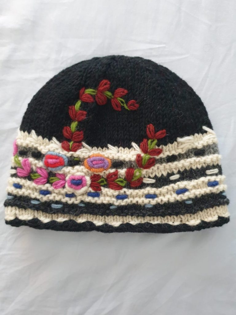 #SH-NP-008 #100% Organic Wool Toques Art work Hand Embroided Hand Knitted with warm Lining inside Natural dye colors use. One Size in Natural Colours We started supporting the Women's Group in Village Nepal financially. They get Support for Kids' education and Families to have a better life.