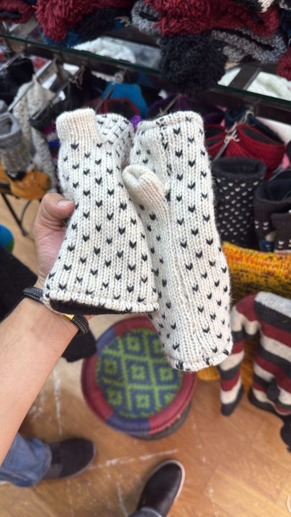 #SH-NP-0014-0015 #100% Organic Wool Hand Warmer Band Gloves Art work Hand Knitted with warm Lining inside Natural dye colors used. One Size in Natural Colours We started supporting the Women's Group in Village Nepal financially. They get Support for Kids' education and Families to have a better lifestyle.We started production of Hand Knitted items in Nepal