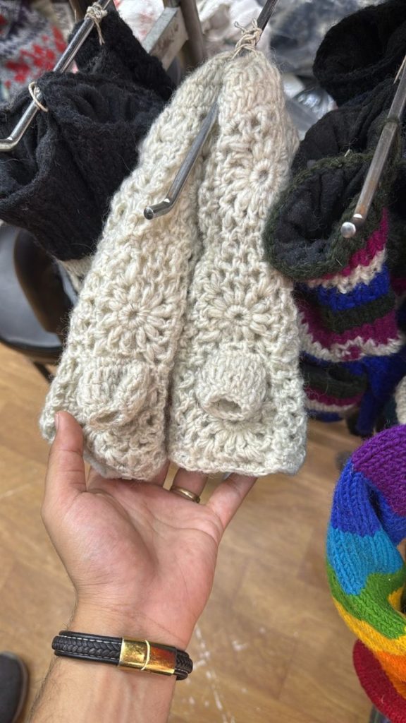 #SH-NP-0017 #100% Organic Wool Hand Warmer Band Gloves Art work Hand Knitted with warm Lining inside Natural dye colors used. One Size in Natural Colours We started supporting the Women's Group in Village Nepal financially. They get Support for Kids' education and Families to have a better lifestyle.We started production of Hand Knitted items in Nepal