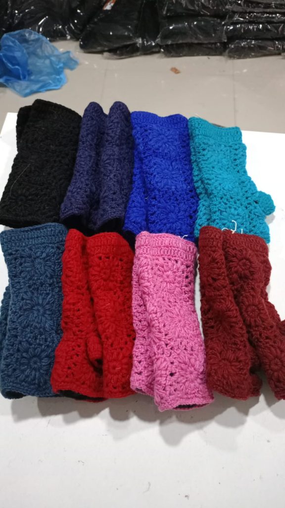 #SH-NP-0016 #100% Organic Wool Hand Warmer Band Gloves Art work Hand Embroided Hand Knitted with warm Lining inside Natural dye colors use. One Size in Natural Colours We started supporting the Women's Group in Village Nepal financially. They get Support for Kids' education and Families to have a better lifestyle.We started production of Hand Knitted items in Nepal in Organic Wool with