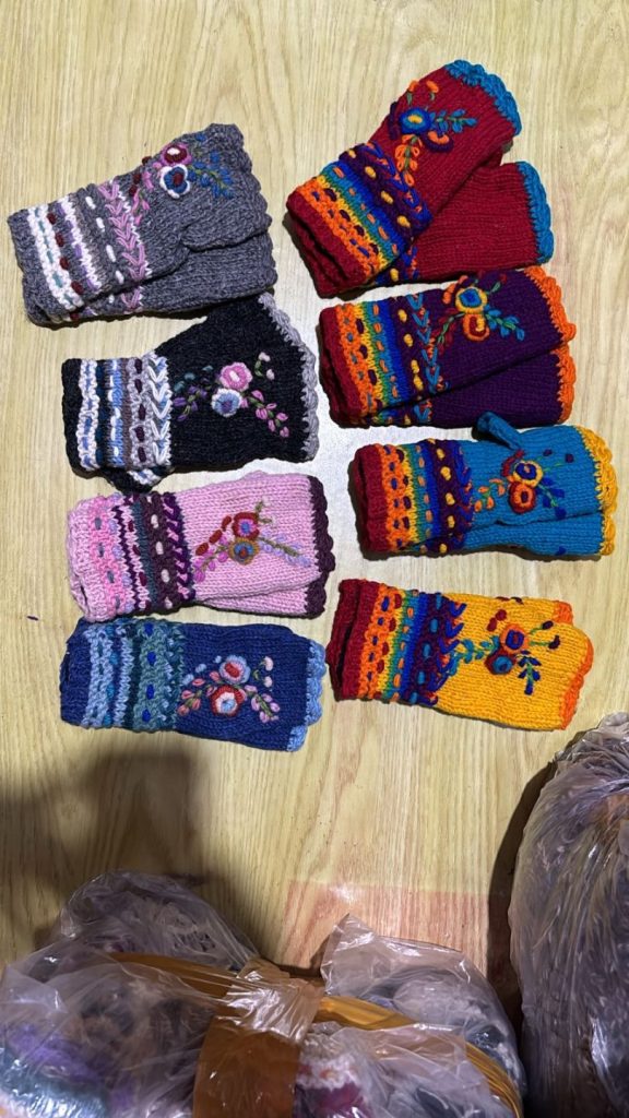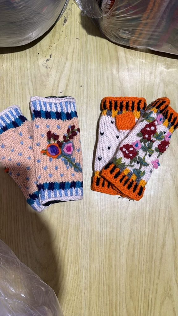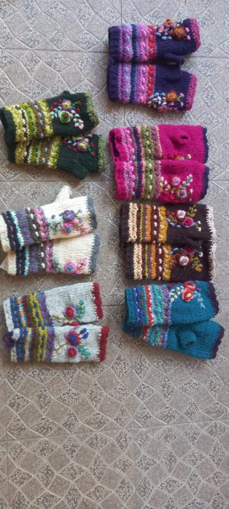 #SH-NP-0016 #100% Organic Wool Hand Warmer Band Gloves Art work Hand Embroided Hand Knitted with warm Lining inside Natural dye colors use. One Size in Natural Colours We started supporting the Women's Group in Village Nepal financially. They get Support for Kids' education and Families to have a better life.