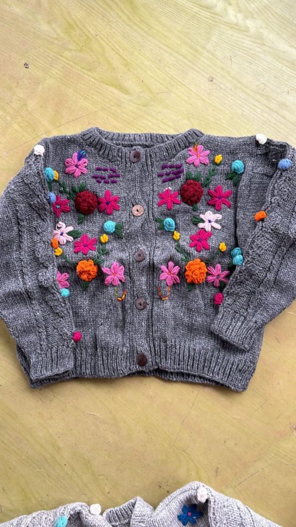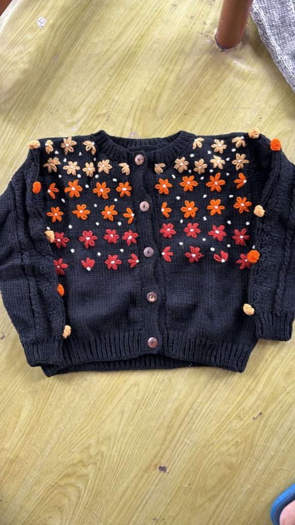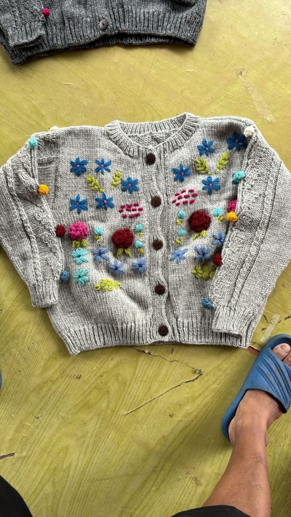 #SH-NP-0021 #100% Organic Wool Sweater Cardigan Art work Hand Embroided Hand Knitted Natural dye colors use. Size S to XXL in Natural Colours We started supporting the Women's Group in Village Nepal financially. They get Support for Kids' education and Families to have a better lifestyle.We started production of Hand Knitted items in Nepal in Organic Wool with
