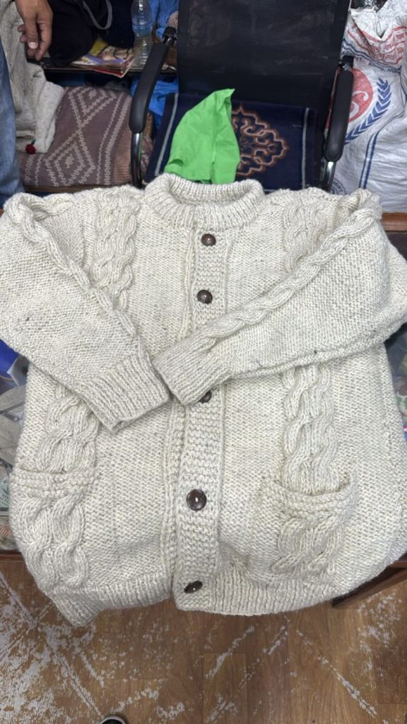 #SH-NP-004 #100% Organic Wool Jacket with Organic Cotton wool Lining inside Natural dye colors used.Size S to XXL in Natural Colours We started supporting the Women's Group in Village Nepal financially. They get Support for Kids' education and Families to have a better lifestyle.We started production of Hand Knitted items in Nepal in Organic Wool with lin