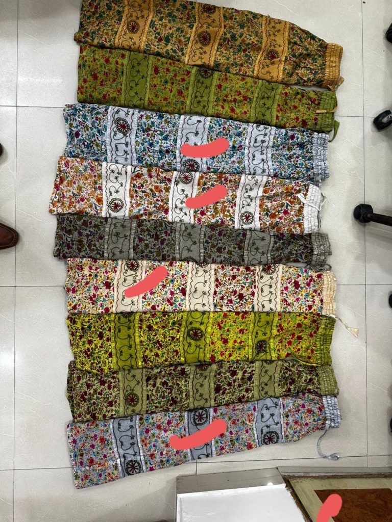 Item Code #019-002 Trousers Normal Wide Style Rayon Bamboo design made Free Size fit Size S to XL from European design. Trousers have elastic that makes adjusts to sizing.100% natural dye colour used, made in India, AZO free, which means there is no chemical in the fabric. Please ask for the price and choice of 14 Solid Fall good colors available