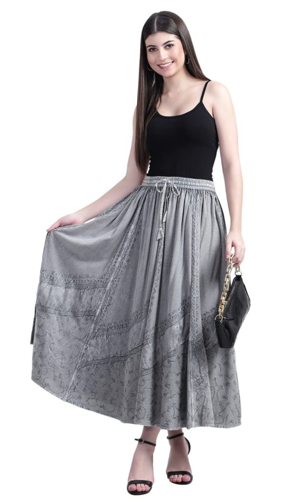#Item Code #SH-FE-120 Skirts 2 side pockets 100% Rayon Bamboo Solid Colour design from European design made Free Size Fit S to XXL. Fabric is Stretchable that make adjusts to size Handmade and Hand Natural Dye Colour Used Made in India AZO Free Means No chemical in Fabric Natural Dye Colour Used Please ask for the price and choices of 10 Fall Colours.