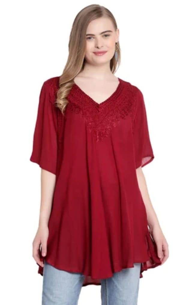 Item Code #SH-FE-317 Italy design Tops F/S Design in Italy Embroider Hand Made in India AZO Free Means No chemicals in Fabric Natural Dye Solid Colours. Please ask for the price One Size Fit from S to XL, in available fall 12 colours.