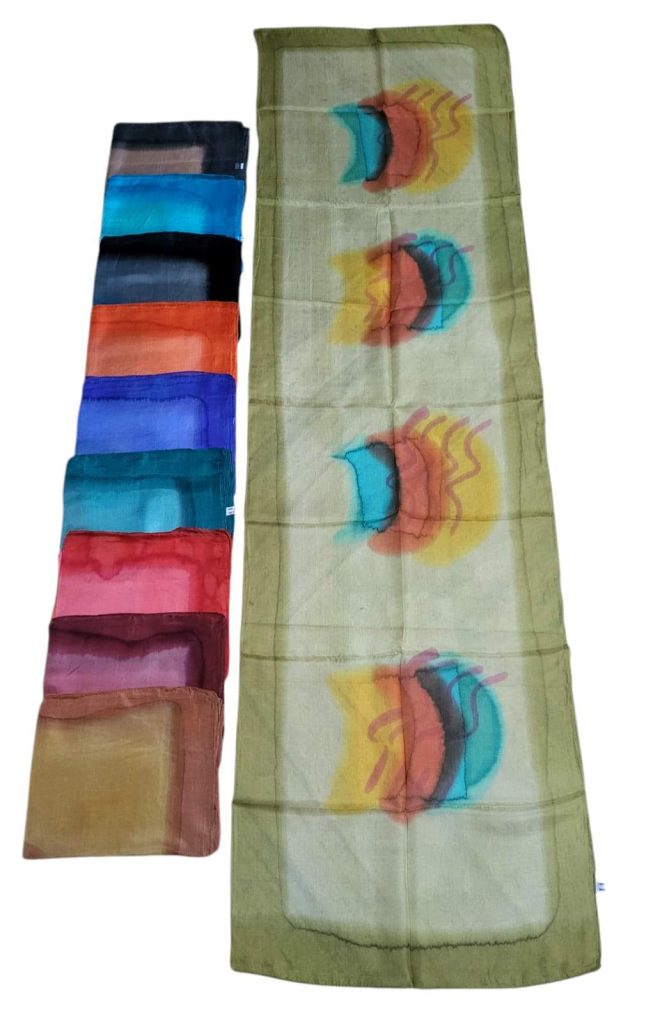 #Colour Code #3,4,5,6,7,8,#tem Code #03-539-1 Silk Hand Painted Scarves Size 100% Silk Design in France Hand Made in Kashmir India AZO Free Means No chemical in Fabric Natural Dye Colours Used Please ask for the price and choice of colors available