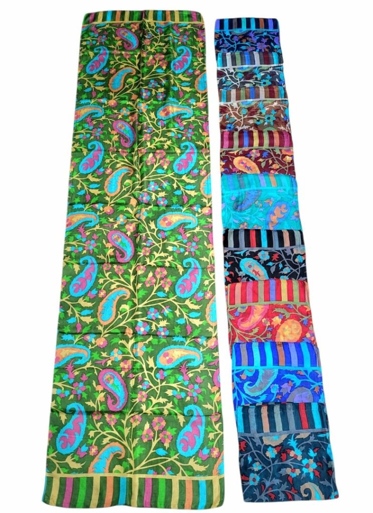 #12–#Item Code #105 Silk Scarfs 100% Silk Design from Europe. Hand Painted and Prints Hand Loomed Fabric, Made in India AZO Free Means No chemical in Fabric Natural Dye Colours Used Please ask for price and choice of prints designs Summer nice looking prints 100 designs colors available
